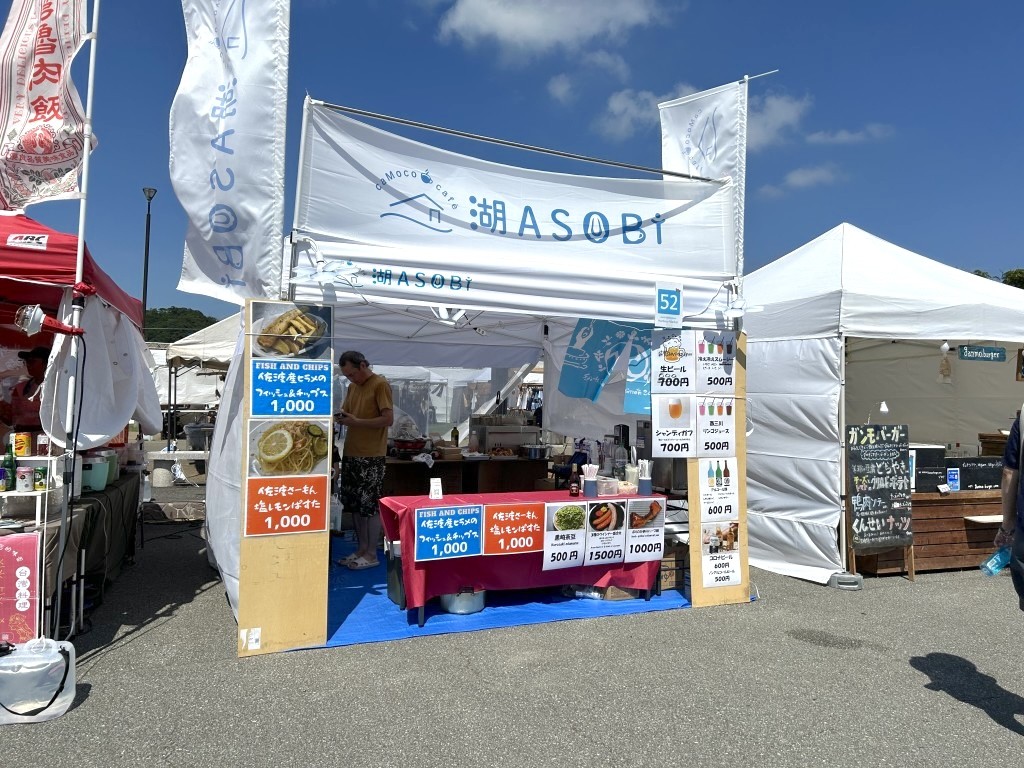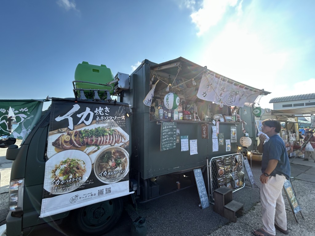 金曜にマーケットゾーンをひと巡りしたときから、ヒットしていたのがここ。日中の暑さから解放され、涼しさも感じられる時間になってから、アルコールと共に味わいたいと思っていた。「旅する居酒屋」というフレーズも気に入っていた。