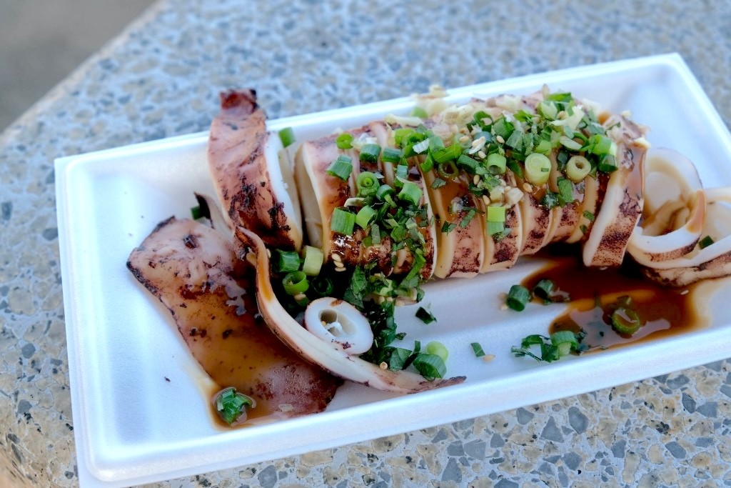 最終日の夕方になってやっとありついて実食。これが大正解だった。自分の好みの味にぴったりだった。醤油の匂いにそそられる屋台のイカ焼きではなく、イカワタをソースとして使った本格派のメニュー。そして焼かれたイカがレア状態。苦味もあるソースがイカの持つ甘さも引き立ててくれている。とにかく絶品で、アルコールのアテとしても最高だった。こんなイカ焼きを出してくれるのだから、他のイカ料理も間違いないのだろう。