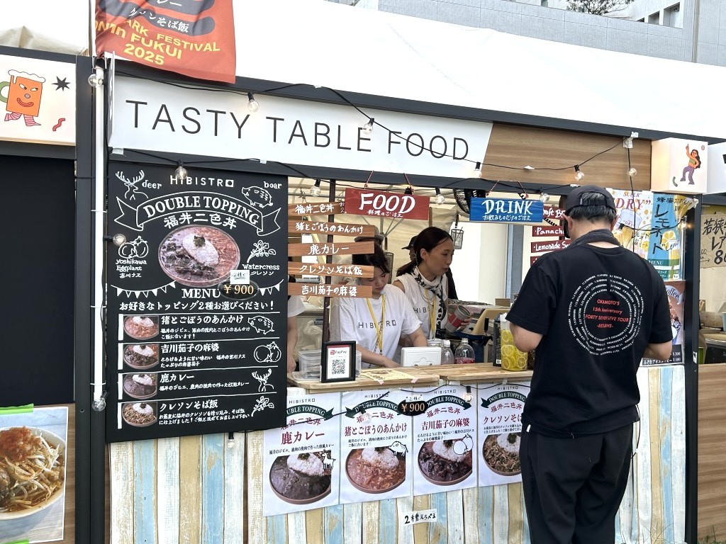 9月になったとはいえ、福井の最高気温は初日の9月6日が32度で9月7日が34度。日陰に入ると風はやや涼しかったけれど、それでも酷暑は残っていた。何を食べたいかというよりも、これなら食べられるだろうとフードエリアを歩いていて見つけたのが氷のメニュー。スイーツではなく、食事としての一品だった。