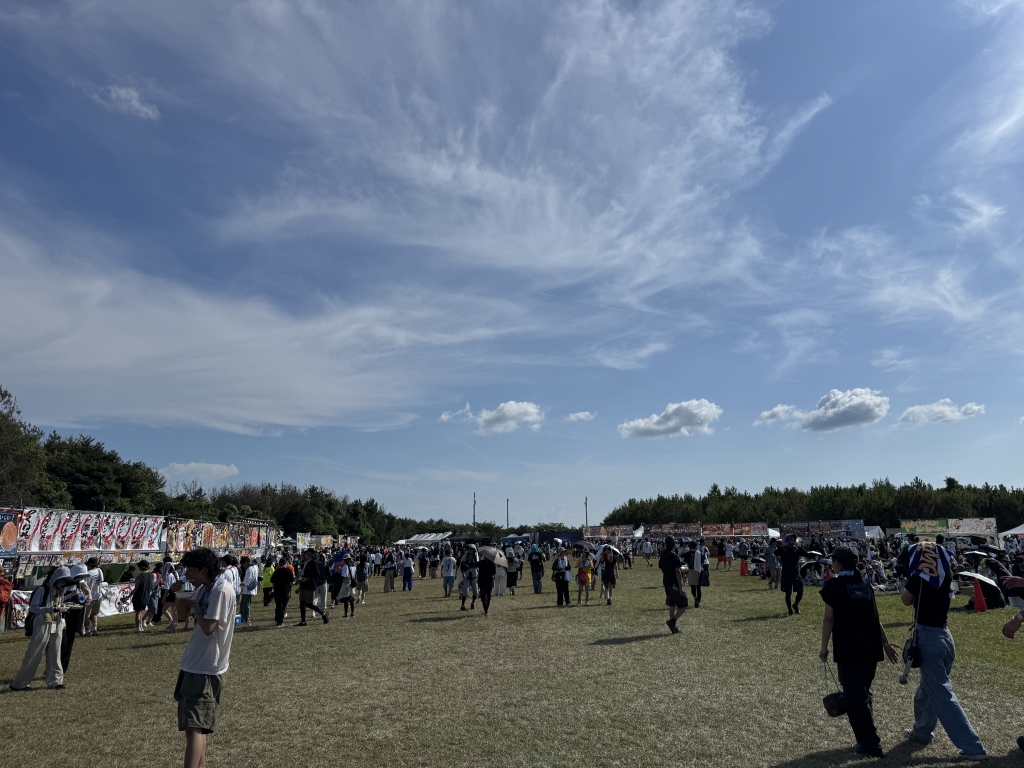 そんなワイバンのフェス飯は30店舗のさまざまな飲食店が一か所に集結している。地元の特産品を使った店舗や、がっつり系、スイーツ系、山口特産の日本酒もラインナップしている。みなさん、おもいおもいの草原の場所で食べるスタイル。広い草原はどこでも座り放題。もちろん若干だが座席も用意されている。シートエリアで食べている人も多かった。