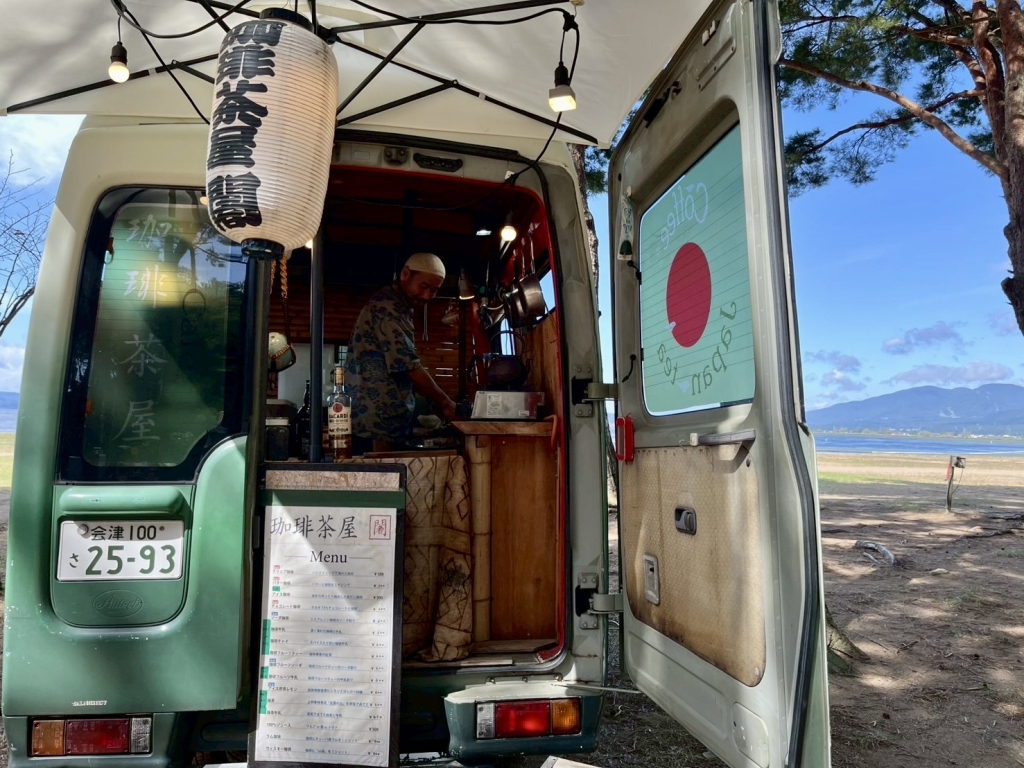 そうして目覚めた朝に飲みたい一杯が珈琲だったりする。そんな方たちに、前日から出店している地元出店のキッチンカー「珈琲茶屋 闍(じゃ)」が7-11amまで出店してくれるという、キャンプインにハッピーなコンテンツが!