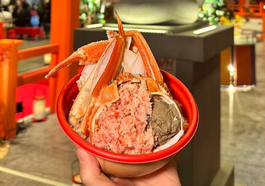 その名の通りカニのほぐし身とカニ味噌がぎっしり詰まった“かにづくし”のかにばっか丼。手に丼をもった瞬間にずっしり感があるのも良きです。カニのほぐし身・カニ味噌は一口目からしあわせが押し寄せるおいしさです!そして、今年かじまはHALL 3・ASTRO ARENAに出店していますが、かにばっか丼はASTRO ARENAのみ販売です。