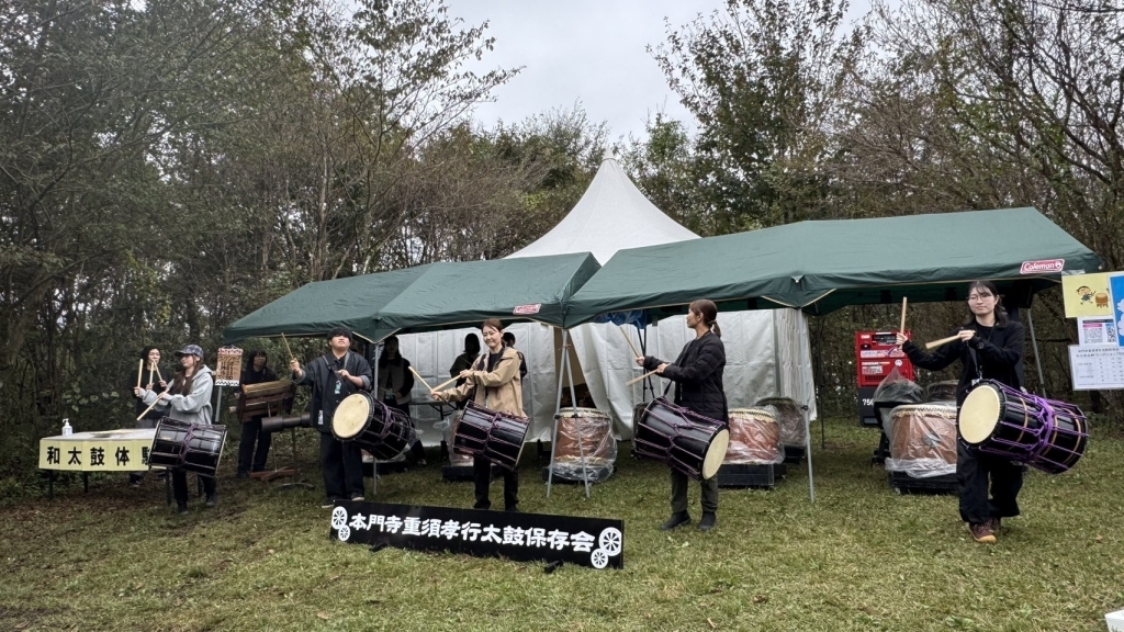 「太鼓ガールズ」と名乗っていただいたお二人は、なんと朝霧ランドの 「本門寺重須孝行太鼓保存会」 の演奏者の方々でした。