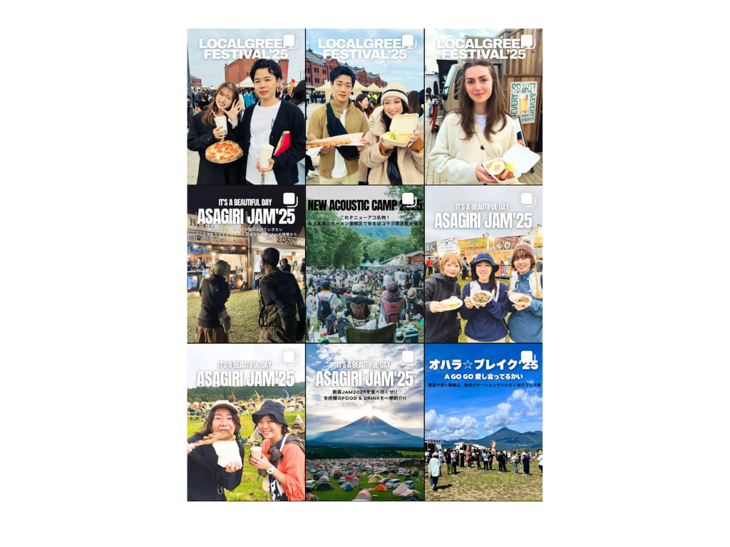 フェス飯クラブは、サイトだけでなくSNSでも楽しめる。SNSでは、来場者が実際に食べているフェス飯を紹介してもらうというスタイルだ。つまり、会場でご飯を選んでいる方が食べてみたい!美味しかった!と思ったリアルなフェス飯情報に出会えるのだ。ご飯はもちろん、楽しんでいる人々の表情やファッションも見どころのひとつだろう。パキっとしたカラーの装い、フェスのお手本のような装備など……フェス飯を手にする人を観察すると、自分が参戦するときの参考にもなるだろう。