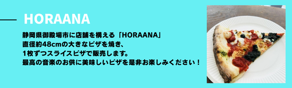 静岡県御殿場市に店舗を構える「HORAANA」は5月に御殿場で開催されているアコチルに出店しているピザ屋。尽未来祭でも、移動式石窯を持ち込んでの出店だった。冷えても美味いピザだと書かれているけれど、ピザはチーズは伸びるような焼き立てが最高。フェスでもやっぱり焼きたてが食べたい。