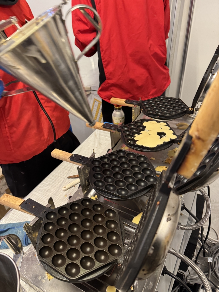 お昼をすぎると常に行列だったこちらのお店でこのワッフルマシーンもフル稼働だった。年末年始にはマシーンが増加されていた。