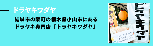 結城市の隣町の栃木県小山市にある、ドラヤキ専門店「ドラヤキワダヤ」。『結いのおと』がスタートする前に開催されていた、マーケットイベント『結い市』から出店を続けており、今年で13年目を迎えるんだそう。
