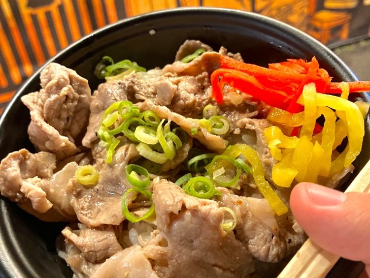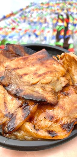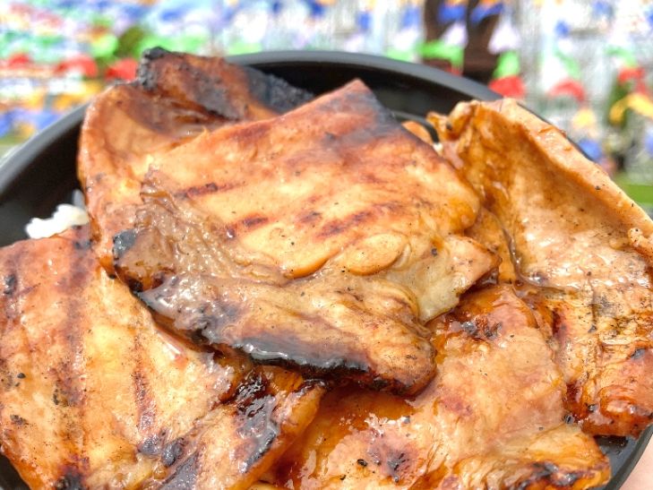 甘いタレで味付けされて、炭火で焼かれたお肉がご飯とあって美味しかったです