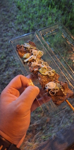 しょうがないけど冷めると肉が硬くなって噛みきれなく、さらに豪快にかぶらないと食べれない。