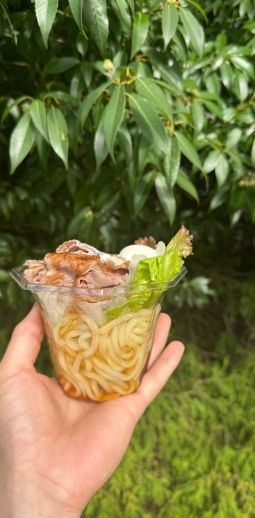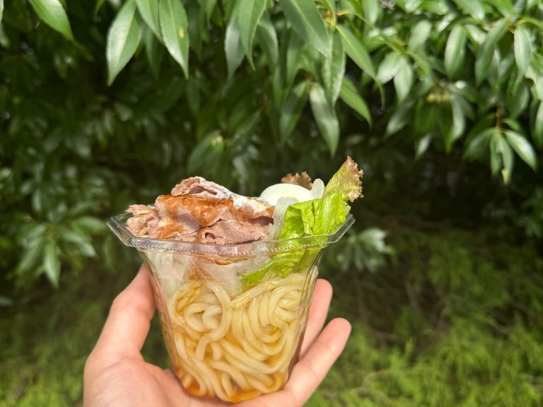 冷たいロービーうどんに温泉卵をトッピングしていただきました!
