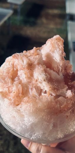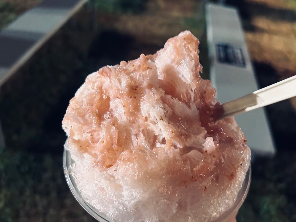 氷自体はフワフワでいいのですが、お店の人に聞いた感じもっと生いちごシロップっぽいのかなぁ〜と思ってたのにジャムっぽい甘さのシロップでした。