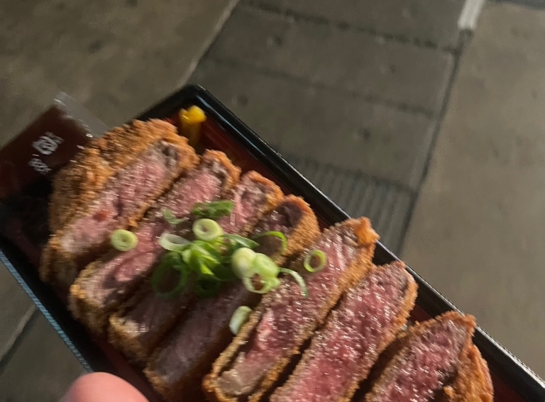 牛とろかつ重!とろとろの牛カツが容器をはみ出るくらいのボリュームでとても美味しかったです!