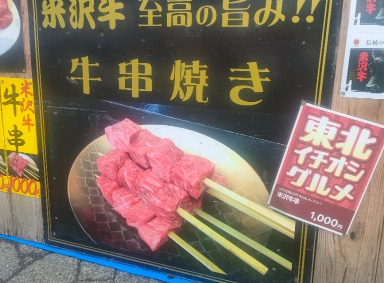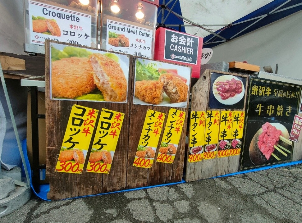 米沢牛串、牛タン串、米沢牛コロッケ、米沢牛メンチカツを販売します