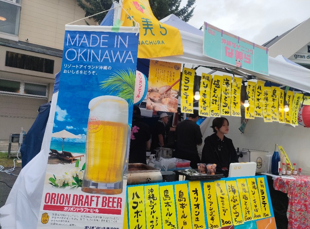 ラフテー(豚角煮)、沖縄そば(ソーキそば)、海ぶどう、オリオンビールを販売します