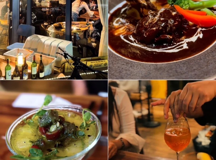 the EVOLTEさんは、ビーフシチューやフォカッチャ、ほうれん草とカニのほぐし身のババロア、それらにマッチするワインを出してくださいます!