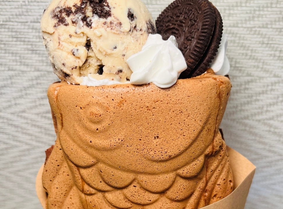 シン・いばらき飯にて特別賞を受賞した鯛パフェです。鯛焼きの生地も独自の配合で調整し、生地だけでも美味しいと評判をいただいています。ぜひお召し上がり下さい。