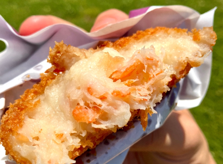 チーズ入りずわいがにたっぷりコロッケを食べました。揚げたてを食べれたため、チーズが伸び熱々でとても美味しかったです。続きを見る -