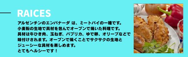 たくさんあるお店の中から食べた事ない世界の料理ないかな〜と探していると、アルゼンチンフーズの文字を発見。エンパナーダとは、アルゼンチンのミートパイ。 スタッフのお姉さんに「ビーフ一択です!」とおすすめされるも、「エンパ茶ナーダ」という抹茶入り生地のバリエーションも発見。かなり迷いましたが、今回はまずスタンダードなビーフを選んでみました。