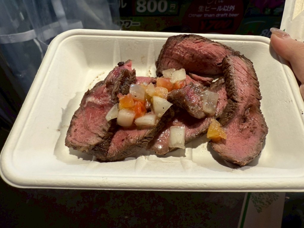 セットメニューだと丼タイプになるらしいが、潔く肉のみをチョイス。しっかり焼かれてるのに、想像以上に柔らかくてジューシー。そして薄切りなのでパクパクと手軽に食べられます。シュラスコ特有のスモーキーな香りと、肉そのものの旨みがしっかり感じられるのが魅力。“獣っぽい旨さ”というと少し荒々しく聞こえるかもしれませんが、それがまさにシュラスコの醍醐味。肉好きをうならせる味です。添えられた野菜のビネガーソースも最高。 肉の脂との相性良すぎます。重たくならずに最後までおいしくいただけました。