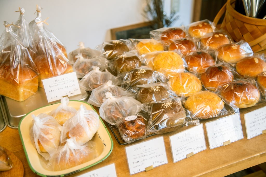 再び駅北側エリアに戻って、「ぱんやムムス」へ。駅からは徒歩15分、204号線の結城小前交差点付近にあります。「奥順つむぎの館」もすぐ近くにあるので、順番に行くのも良いと思います。こちらは、旧黒川米殻店の「見世蔵」(店舗兼住宅)をお洒落にリノベーションしたパン屋さんです。歴史ある街の風格漂う外観は、一見パン屋さんには見えませんが、店内はお洒落で上品な佇まいで清潔感が溢れています。イートインスペースもあり、小上がりに大きな卓袱台が1つ。みんなパンを囲んで座ったら、なんだかサザエさんみたいな古き良き一家団欒ムードもほんわかと感じられそうです。
