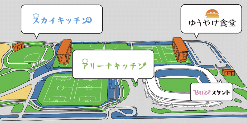 JAPAN JAM 2026は各所に飲食エリアが点在しています。ゆうやけ食堂、BUZZスタンド、アリーナキッチン、スカイキッチンと4か所あり、どこも特色のあるスイーツがあります。......ということで順番に紹介していきますね。