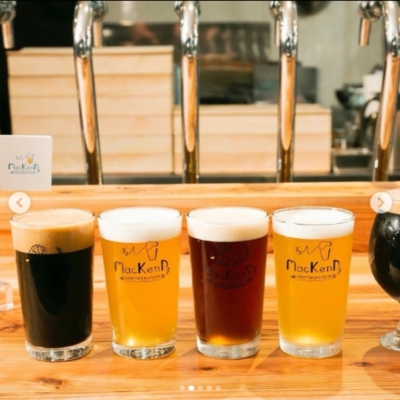 自家醸造クラフトビールと自家製ホットドッグのお店マッケンディーです。 クラフトビールは季節のフルーツを使ったものからオーソドックスなものまで幅広く醸造。 ホットドッグは醸造時に余ったビール麦汁をアップサイクルして作ったパンと 「湘南みやじ豚」を使った自家製ソーセージを組み合わせた当店オリジナルのホットドッグです。