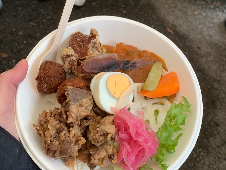 ひよこ豆のコロッケやとりからなど、おかず満載で全て美味しかったです!!