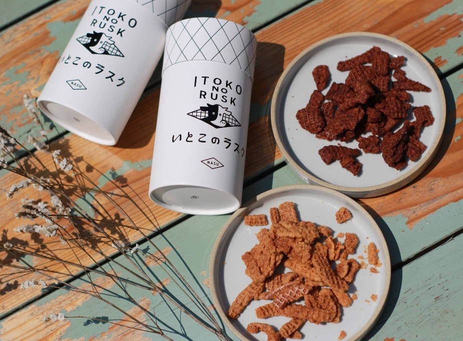 “ふわっ、シャリッ、とろっ” の3つの食感が楽しい「バターのいとこ」は、酪農王国でもある栃木県・那須で牧場を営む酪農家たちの愛情が詰まったおいしい牛乳からバターを作る際に、その大半としてバターと共に生まれるものの、安価に販売されてしまう「スキムミルク」の価値を高めるために誕生したお菓子です。 今回は、“素材の恵みを余すことなく食べてもらいたい”という、作り手の想いから誕生した『いとこのラスク』をお持ちします、 バターのいとこを製造する際に出てしまうおいしい生地の「切れ端」を再利用したお菓子です。