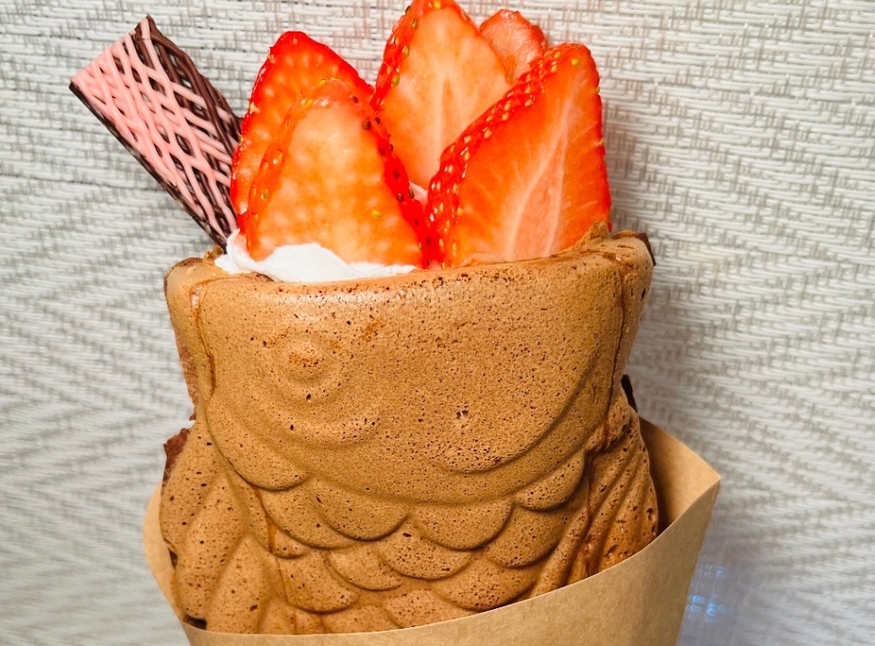 シン・いばらき飯にて特別賞を受賞した鯛パフェです。鯛焼きの生地も独自の配合で調整し、生地だけでも美味しいと評判をいただいています。ぜひお召し上がり下さい。
