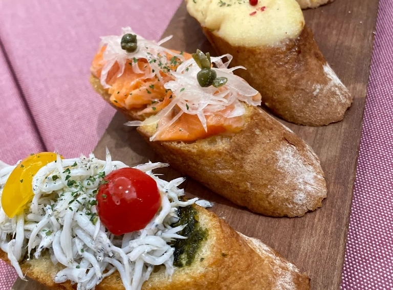 さかさ川沿道のトラットリアであるM'sさんは、トリッパ、ミックスピザ、ラタトゥイユと牛ひき肉のペンネを販売します。