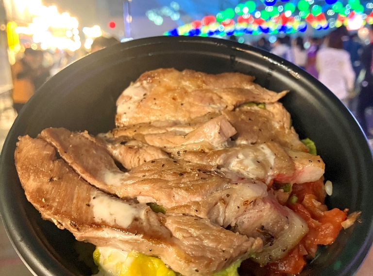 羽のカリカリ食べて、コックピットの中は、レタス、サルサソース、ポーク、そしてチーズ。